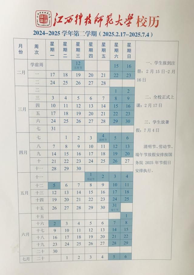 校历(2025.2.17-2025.7.4)