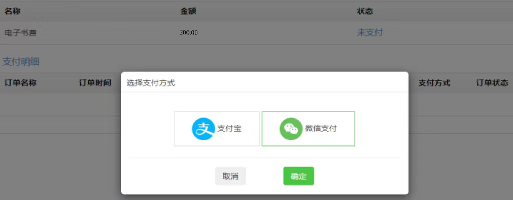 确认金额,点击未支付会有窗口弹窗