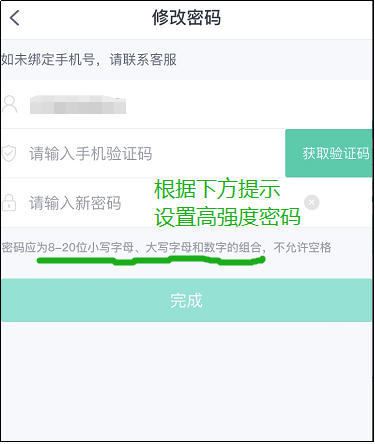 3.绑定手机号、设置高强度密码