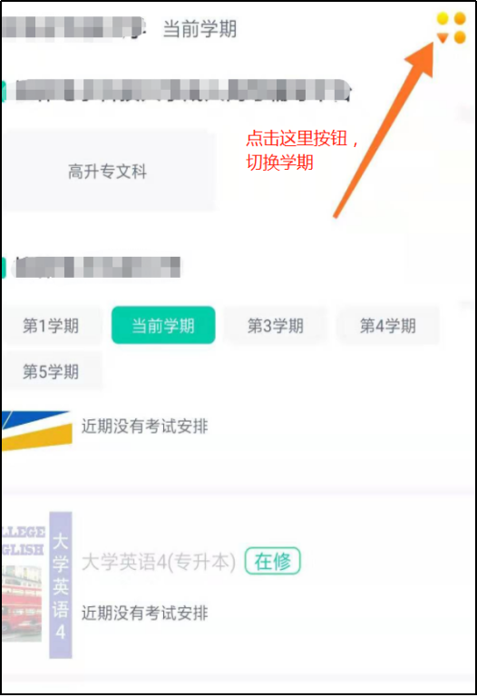 点击右上角黄色按钮,可以切换学期。点击具体课程,即可开始学习(下右图示)