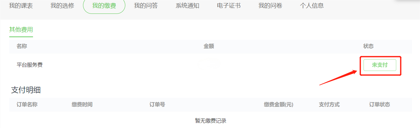 7.选择缴费方式,完成缴费