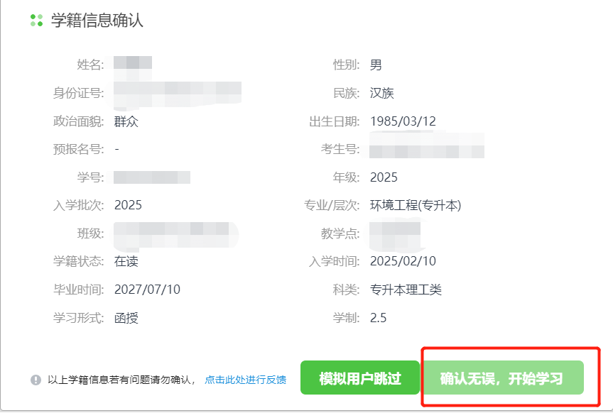 5.确认学籍信息。